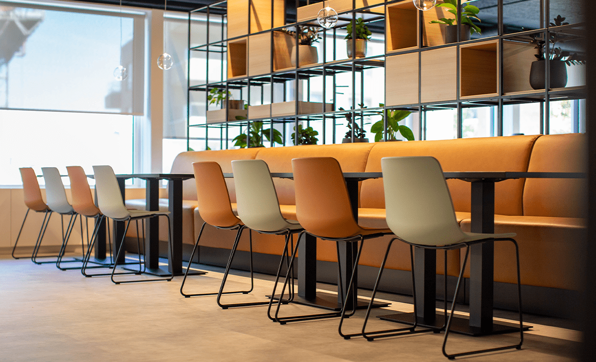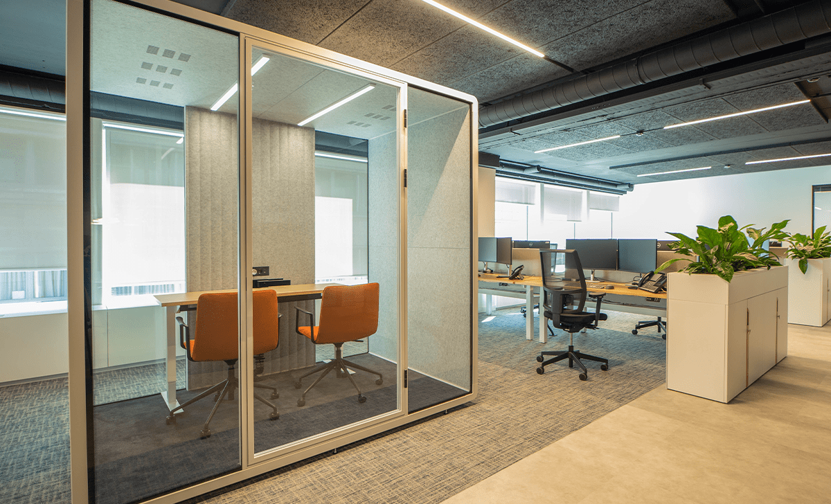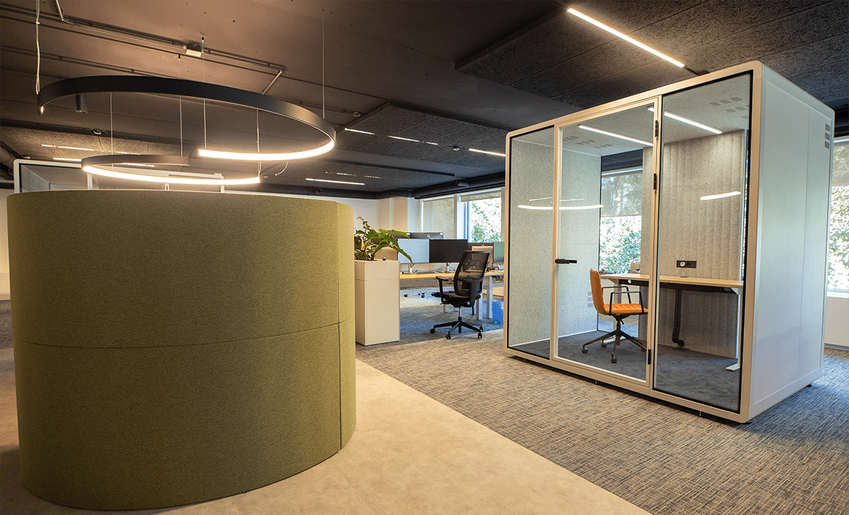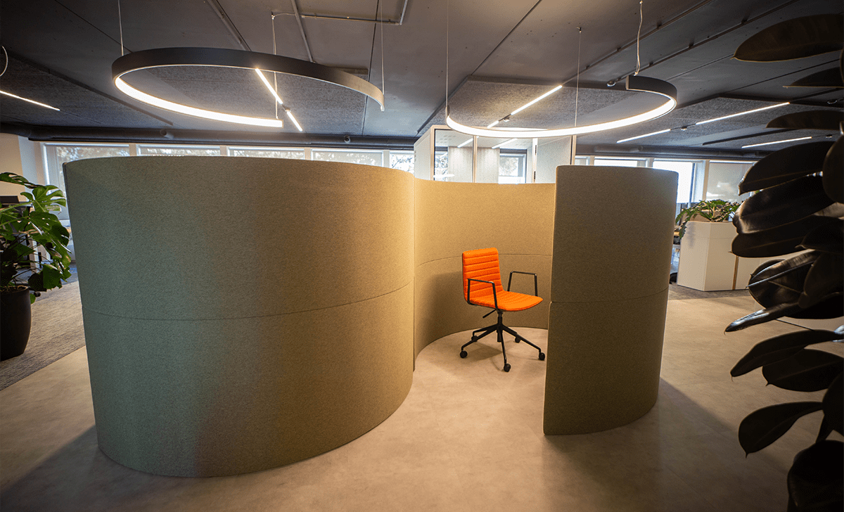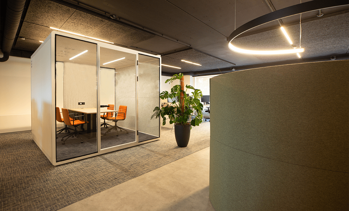 For the first time, we had the opportunity to delight a client with an acoustic Cilo. These stylish workstations make it easy to focus without distractions. In addition to the acoustic Cilos, we also used various acoustic workspaces in the form of acoustic pods.